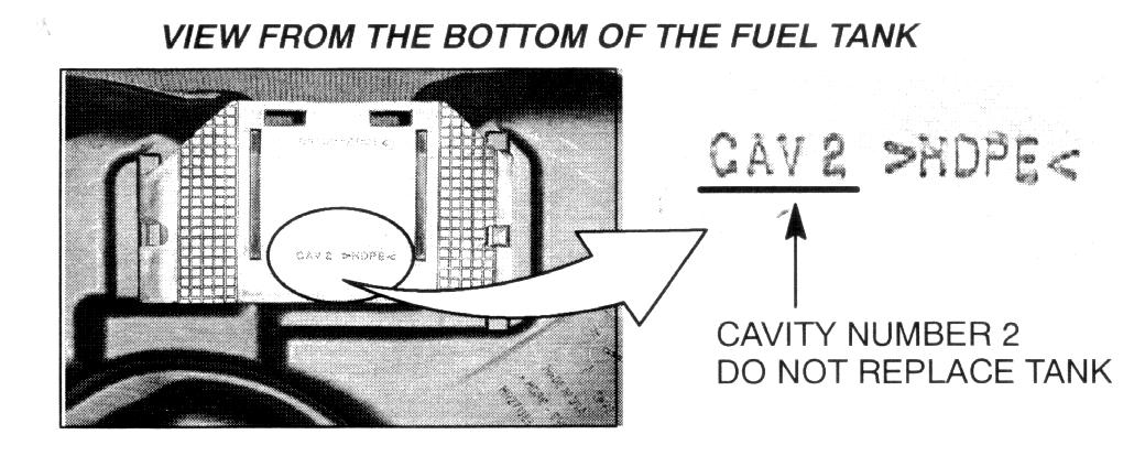 Dealers must inspect the fuel tank cavity number on these vehicles as instructed in this bulletin to determine whether the fuel tank has this defect. The fuel tank must be replaced if the fuel tank cavity number is 1. Refer to the PARTS INFORMATION section of this bulletin.