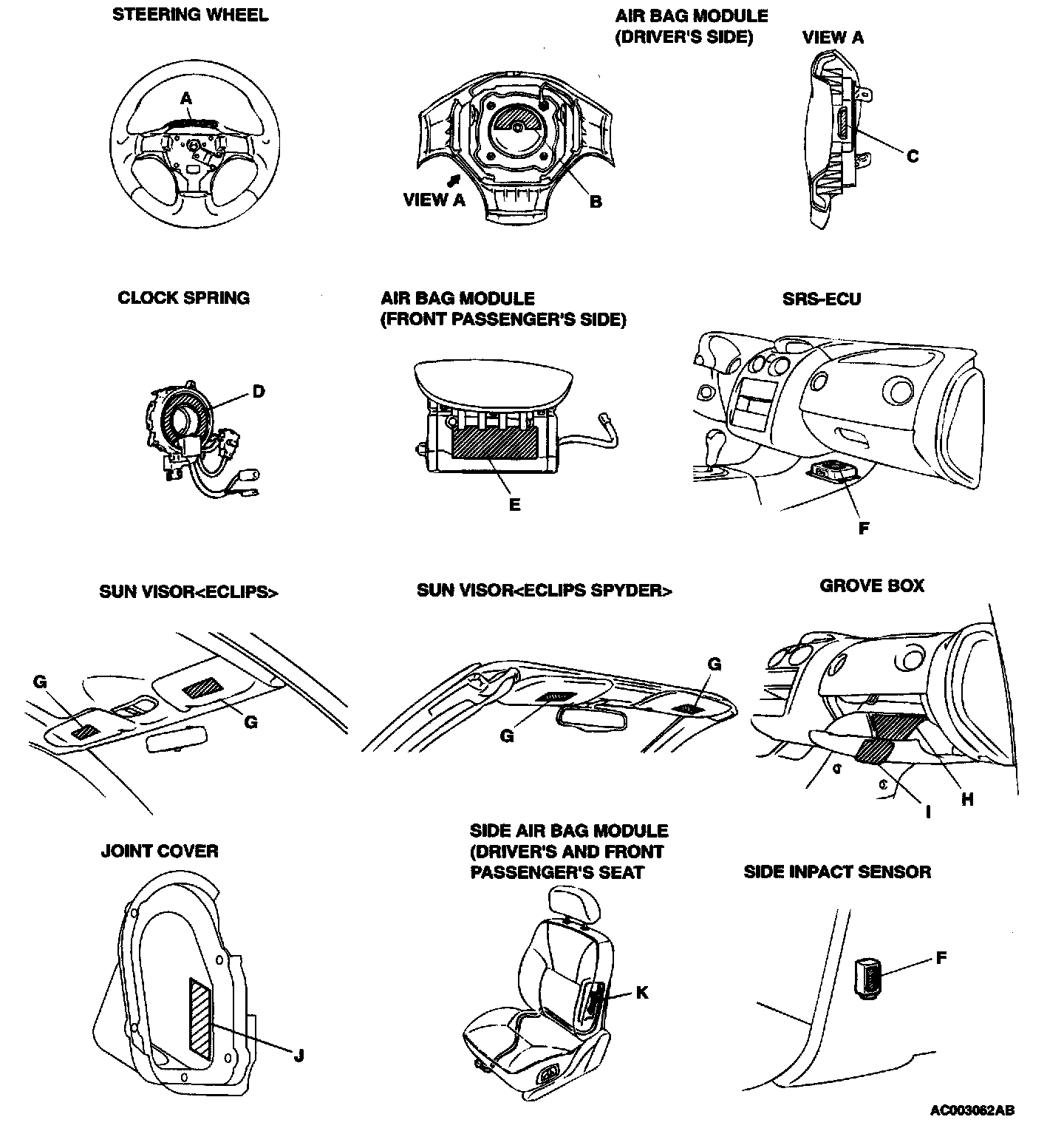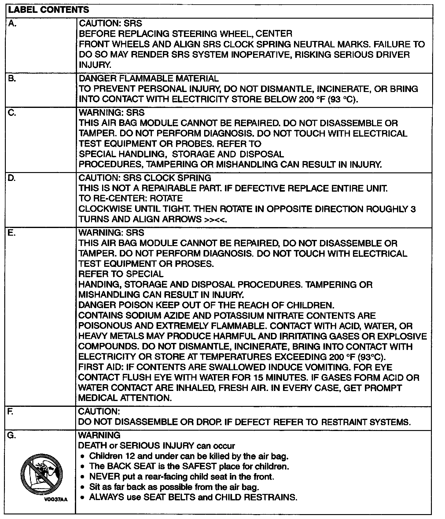 A number of caution labels related to the SRS are found in the vehicle, as shown in the following illustration. Follow label instructions when servicing SRS. If labels are dirty or damaged, replace them.