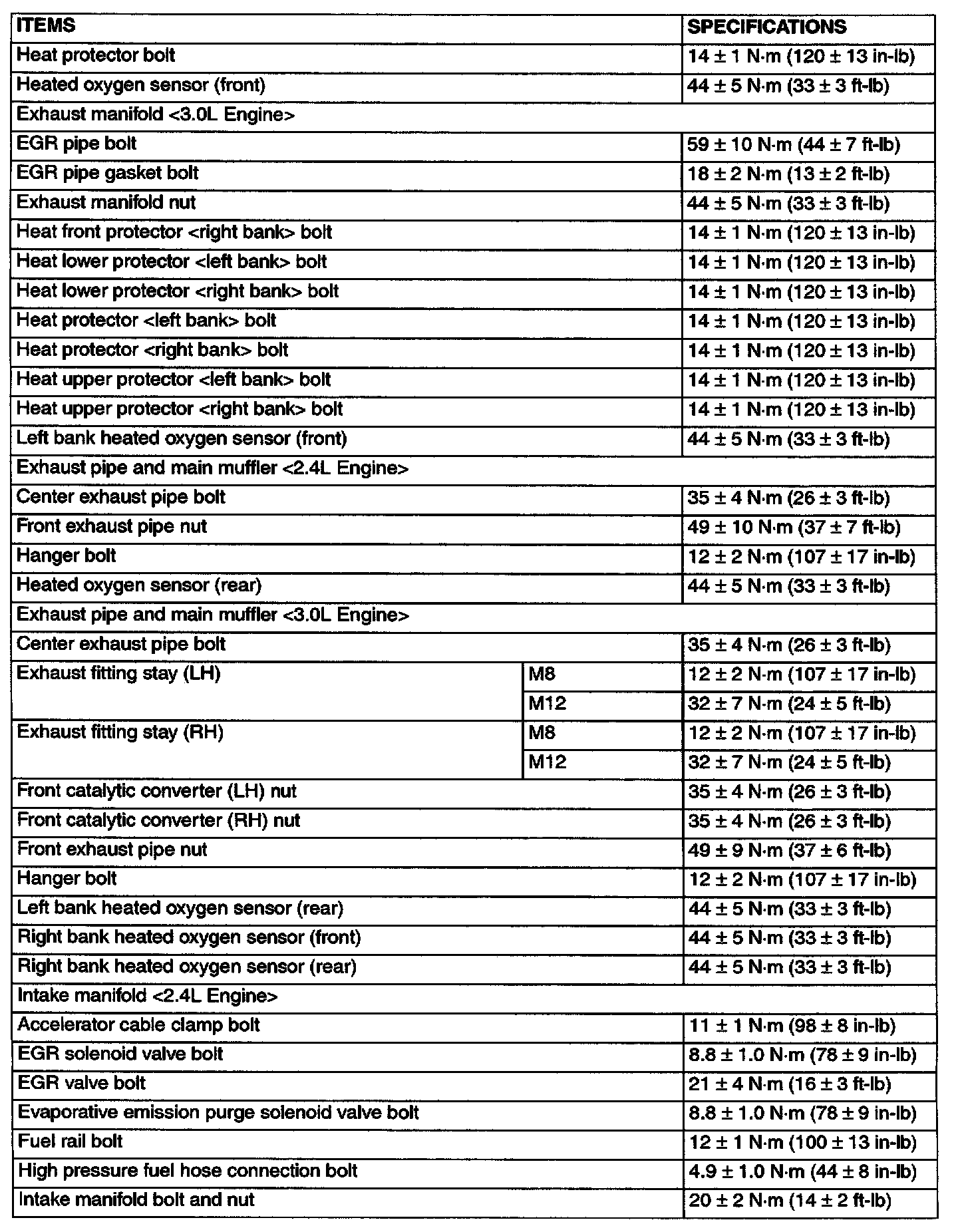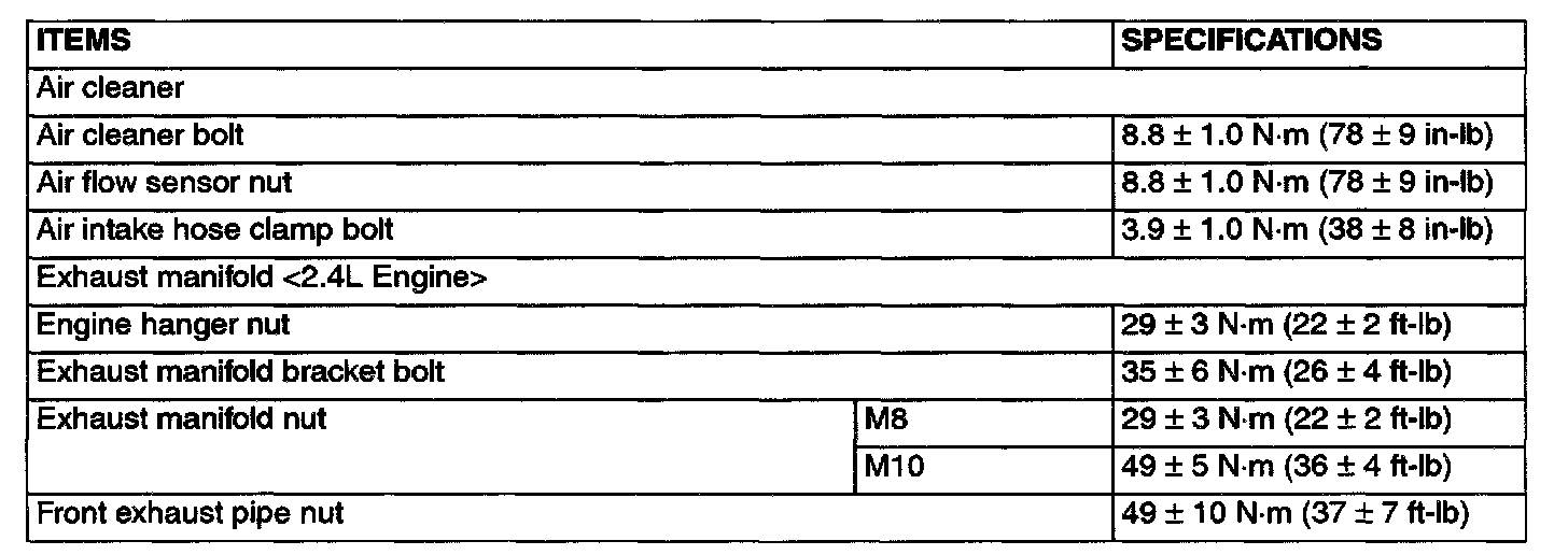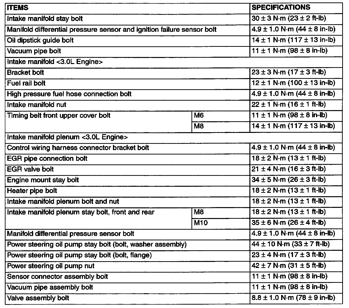 Torque Specifications