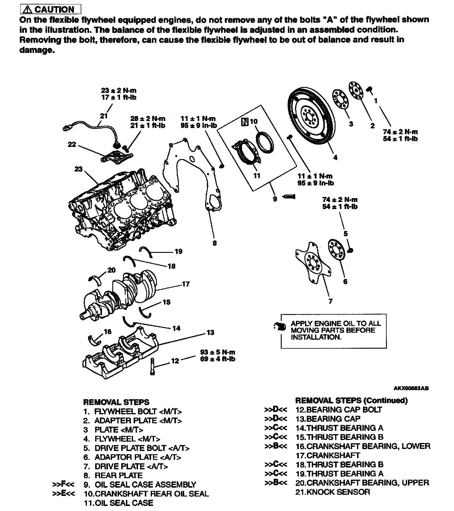 Flywheel Bolts: 74 ± 2 Nm (54 ± 1 ft.lb)