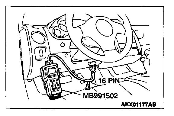 CAUTION: To prevent damage to scan tool MB991502, always turn the ignition switch to the "LOCK" (OFF) position before connecting or disconnecting scan tool MB991502.