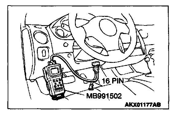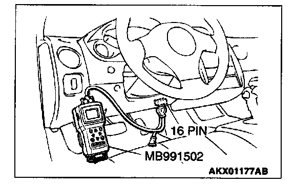 1. Connect scan tool MB991502 to the data link connector.