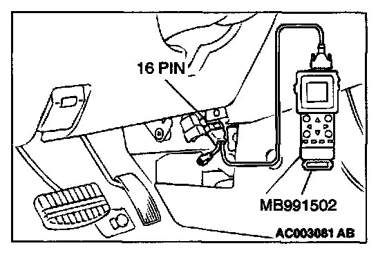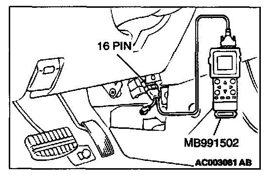 1. Connect scan tool MB991502 to the data link connector.