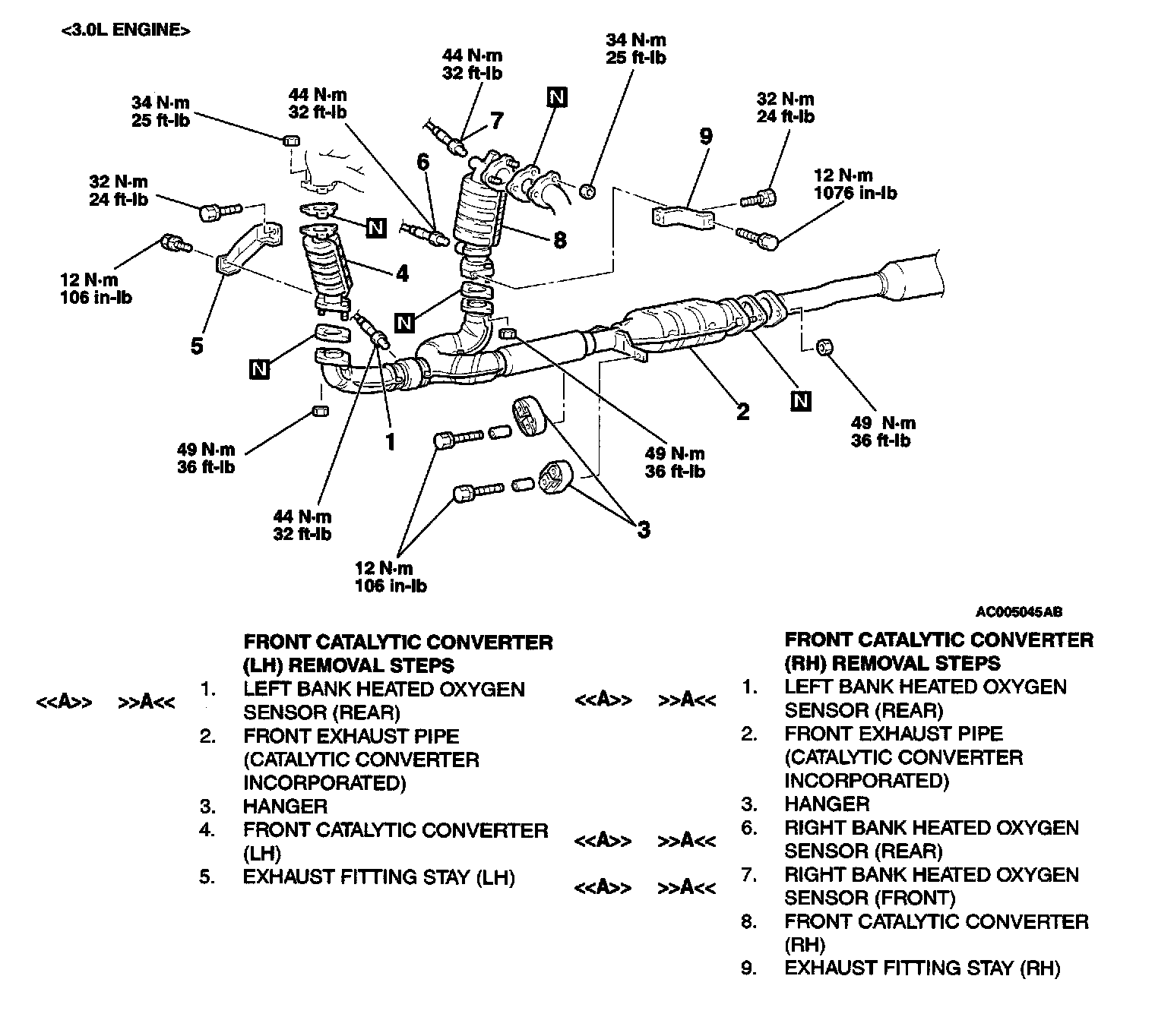 <> HEATED OXYGEN SENSOR (REAR)/LEFT BANK HEATED OXYGEN SENSOR (REAR)/RIGHT BANK HEATED OXYGEN SENSOR (REAR)/RIGHT BANK HEATED OXYGEN SENSOR (FRONT) REMOVAL
