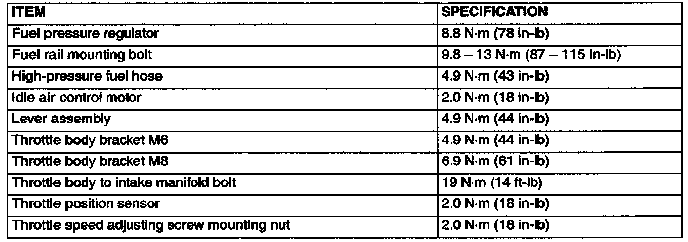 Fastener Tightening Specifications: