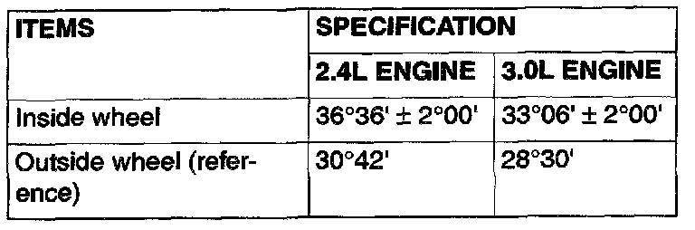 2. If the steering angle is not within the standard value, adjust the toe-in.