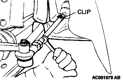 3. Adjust the toe-in by undoing the clip and turning the left and right tie rod turnbuckles by the same amount (in opposite directions).