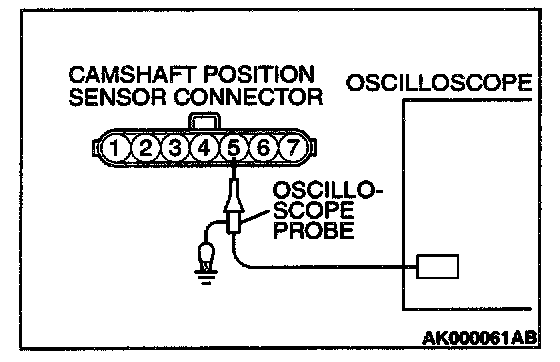 2. Connect the oscilloscope probe to camshaft position sensor connector terminal 5.