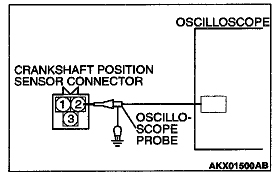 4. Connect the oscilloscope probe to crankshaft position sensor connector terminal 2 (black clip of special tool).