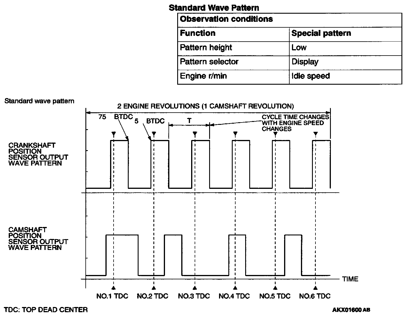 1. Check that cycle time T becomes shorter when the engine speed increased.