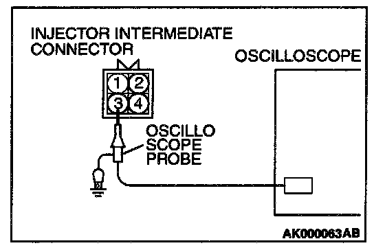 2. Connect the oscilloscope probe to each injector intermediate connector terminal to analyze each cylinder:
