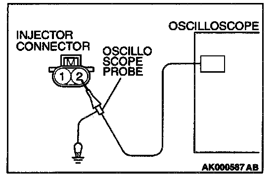2. Connect the oscilloscope probe to injector connector terminal 2.