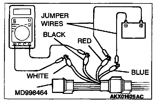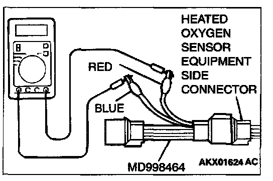 1. Disconnect the heated oxygen sensor connector and connect special tool MD998464 to the connector on the heated oxygen sensor side.
