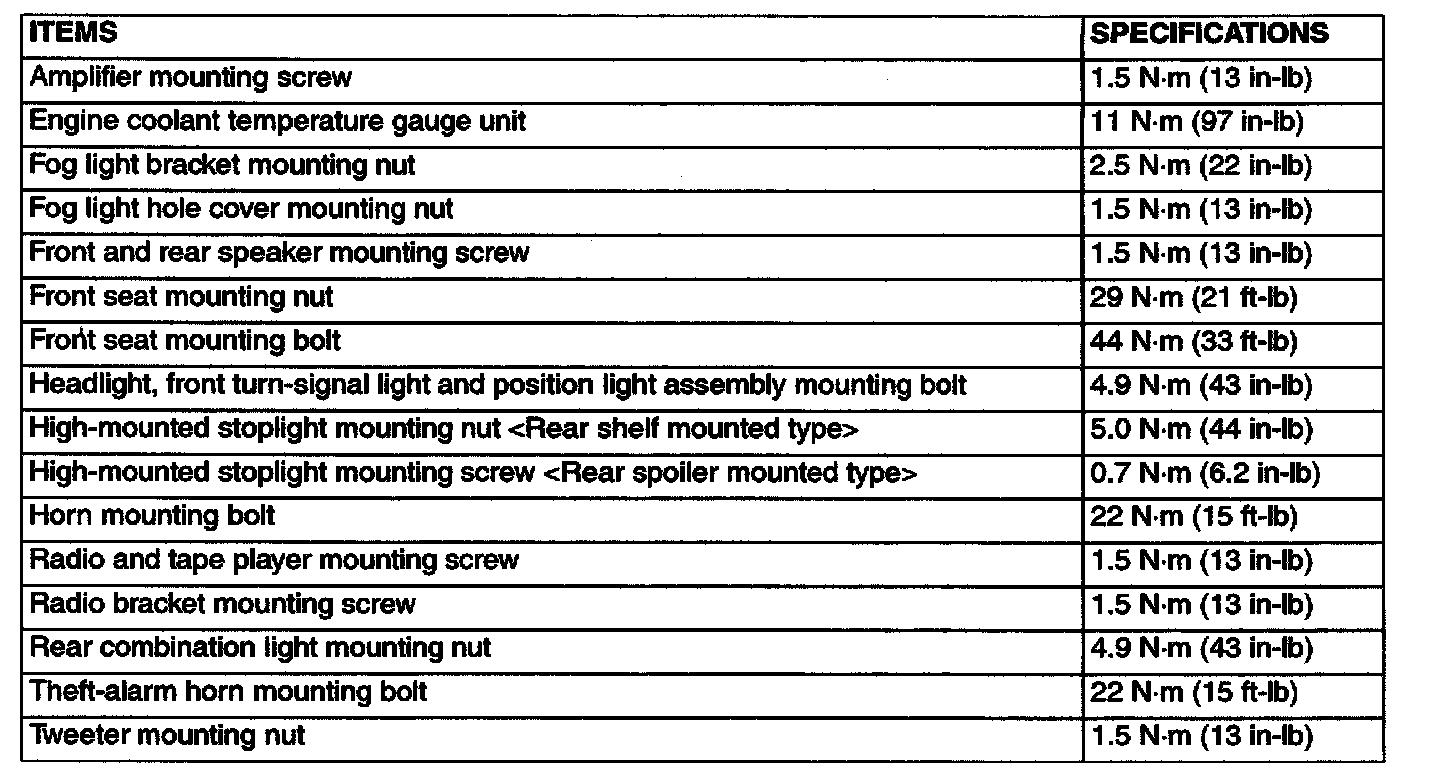 Fastener Tightening Specifications: