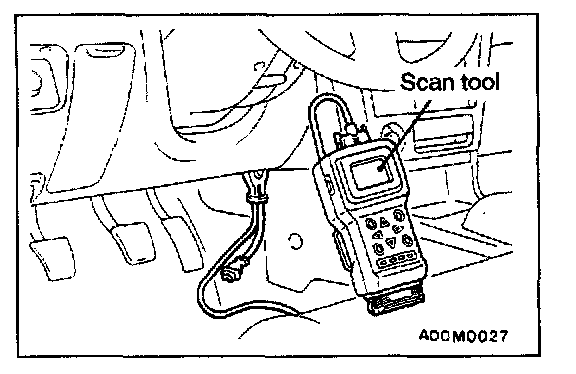 1. Connect the scan tool MB991502 to the data link connector.