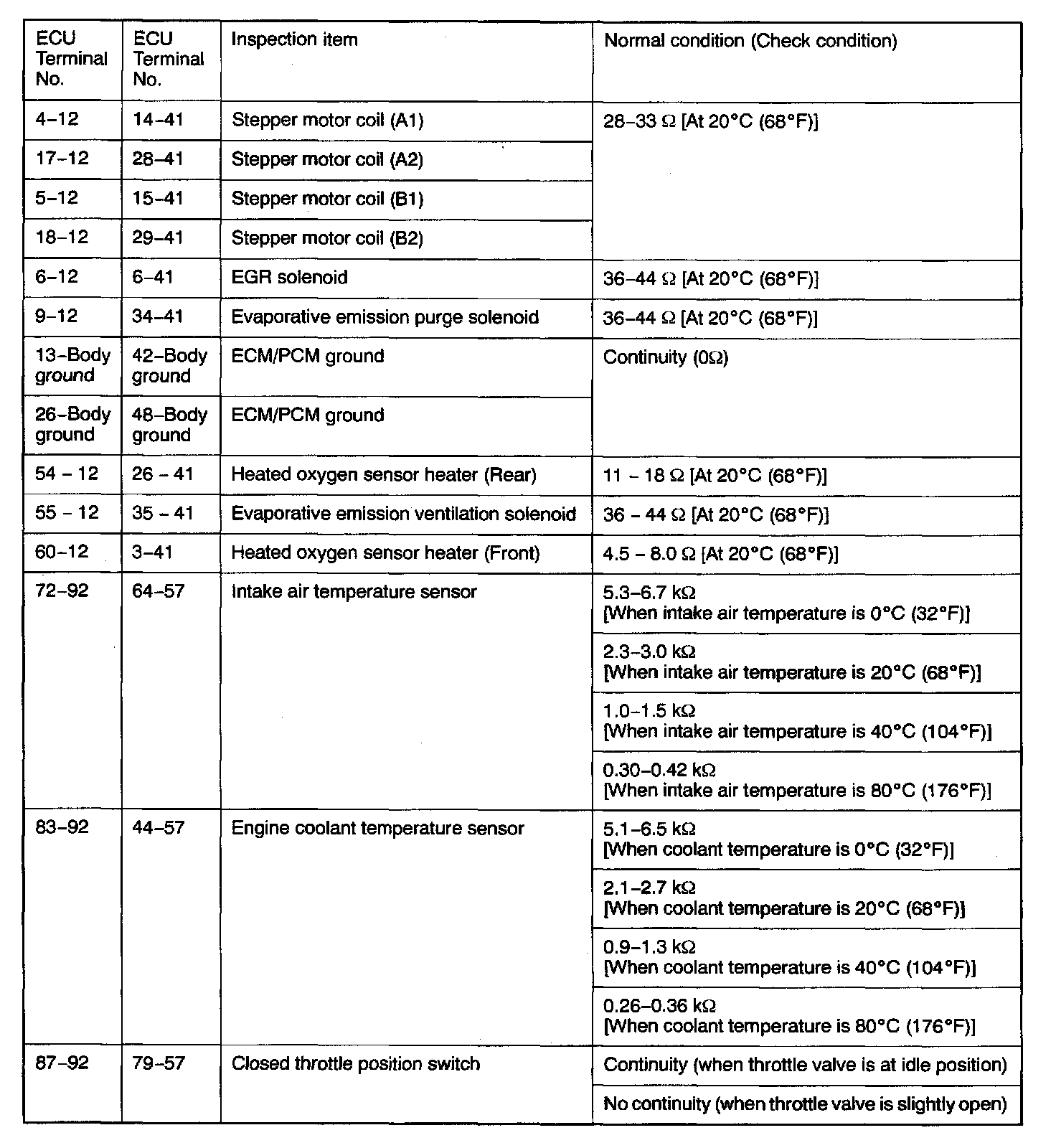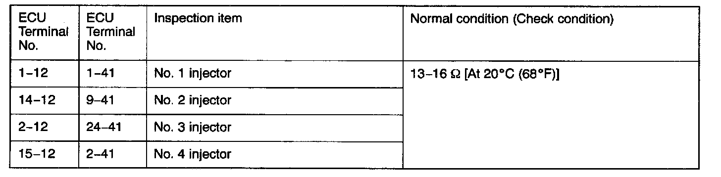 4. If the ohmmeter shows any deviation from the normal condition, check the corresponding sensor, actuator and related electrical wiring, and then repair or replace.