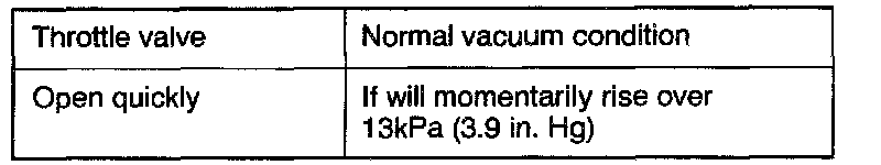 2. Regarding the engine in cold and hot conditions, check the condition of vacuum when engine rpm is increased by opening the throttle valve quickly.