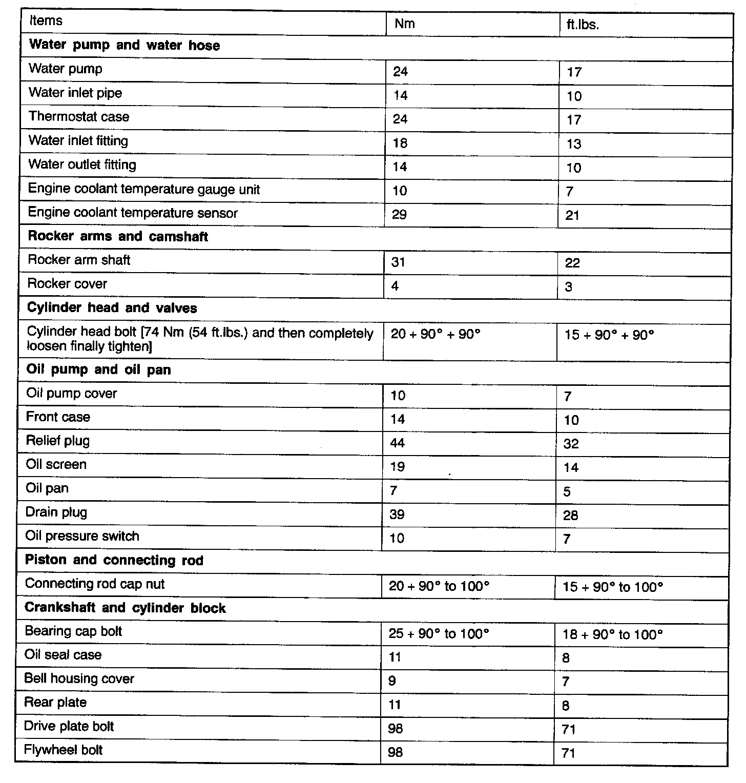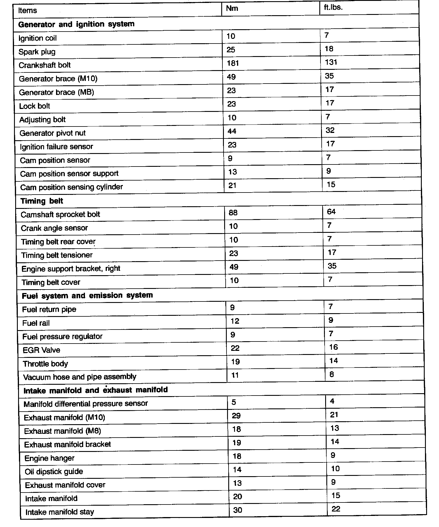 TORQUE SPECIFICATIONS