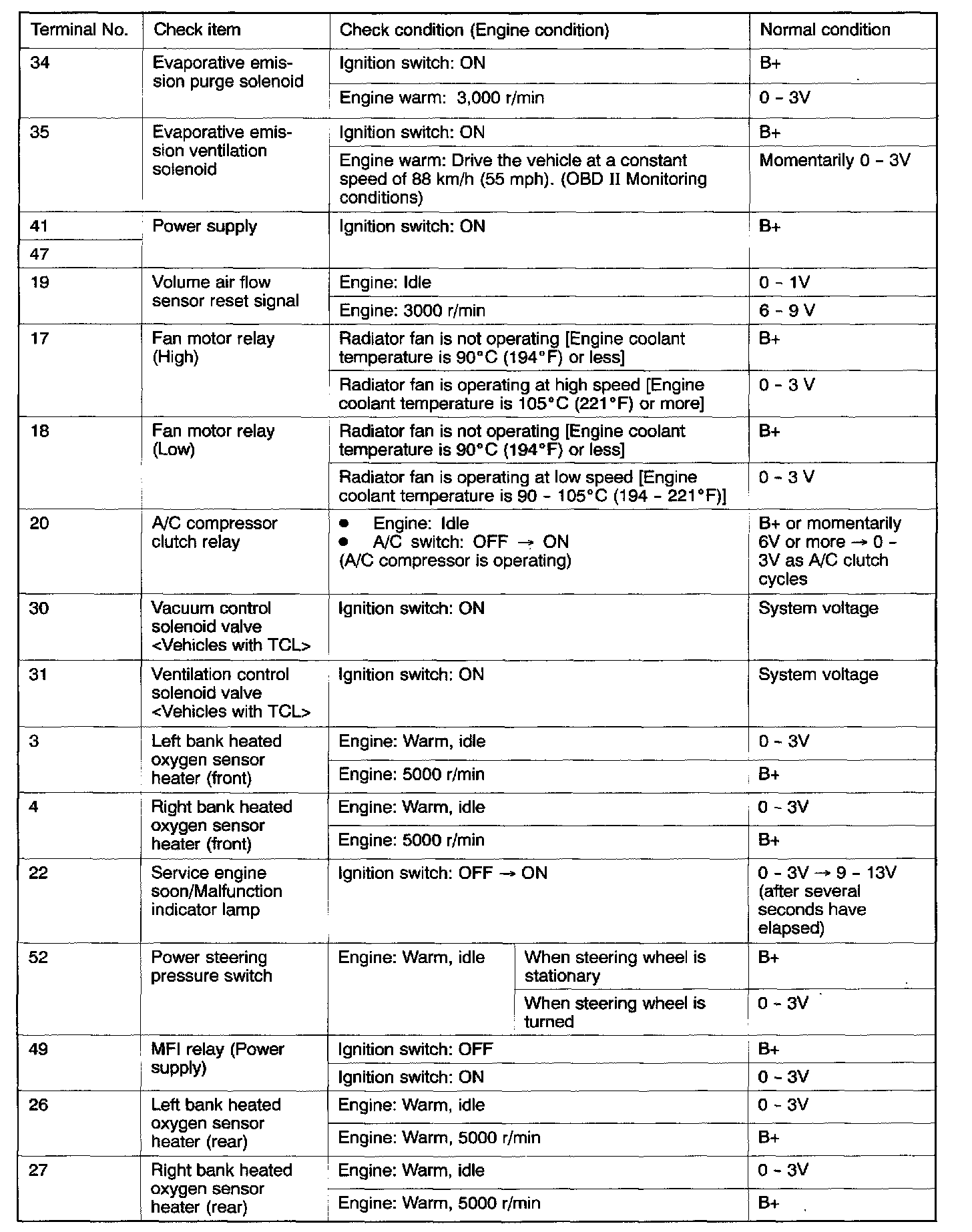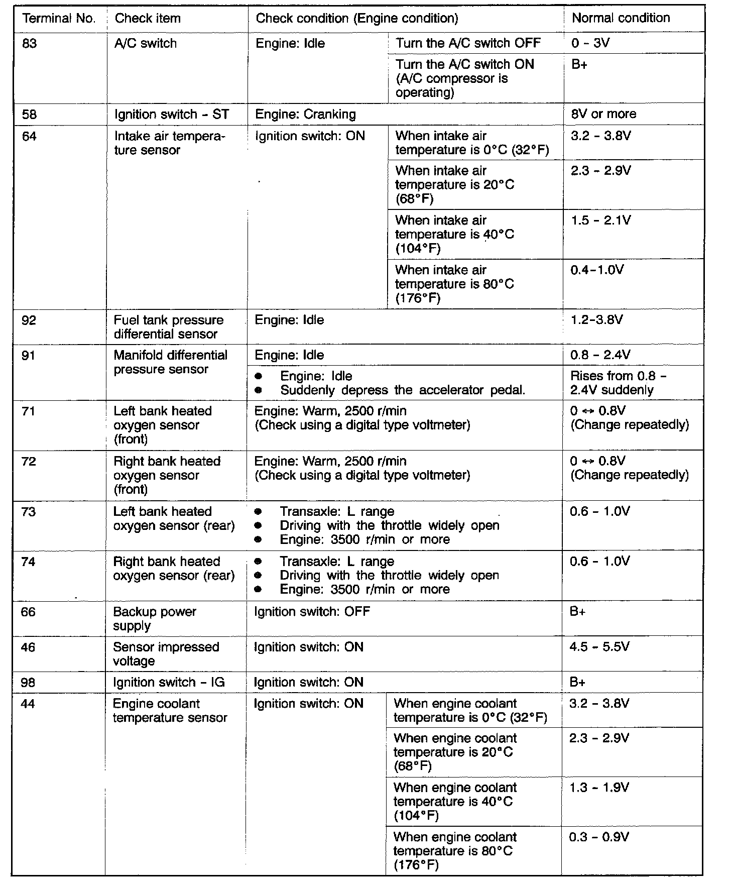 TERMINAL VOLTAGE CHECK CHART