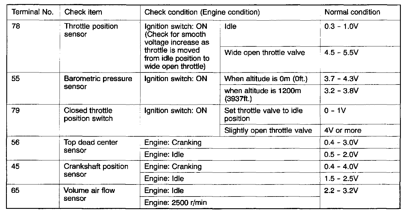 3. If voltmeter shows any division from standard value, check the corresponding sensor, actuator and related electrical wiring, then repair or replace.