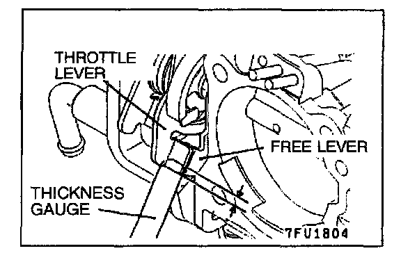 2. Insert a feeler gauge with a thickness of 0.85 mm (.0334 in.) between the levers shown in the illustration to a depth of no more than 3 mm (.1181 in.)