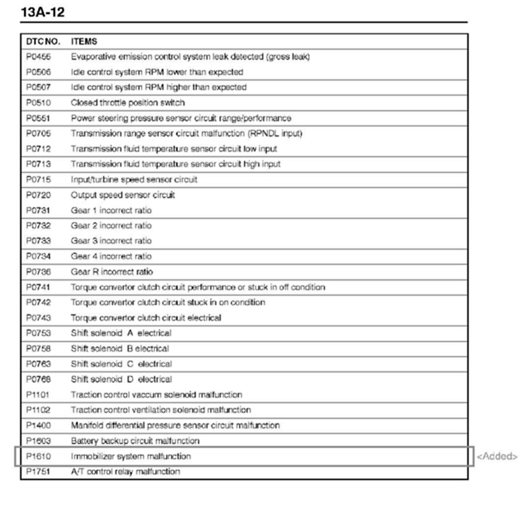 Engine Controls - DTC P1610 Service Manual Addition