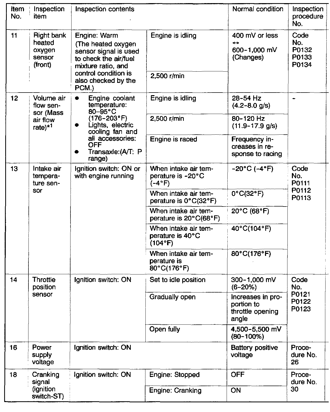 NOTE: *1: In a new vehicle [driven approximately 500 km (300 mile) or less], the volume air flow sensor output frequency is sometimes 10% higher than the standard frequency.
