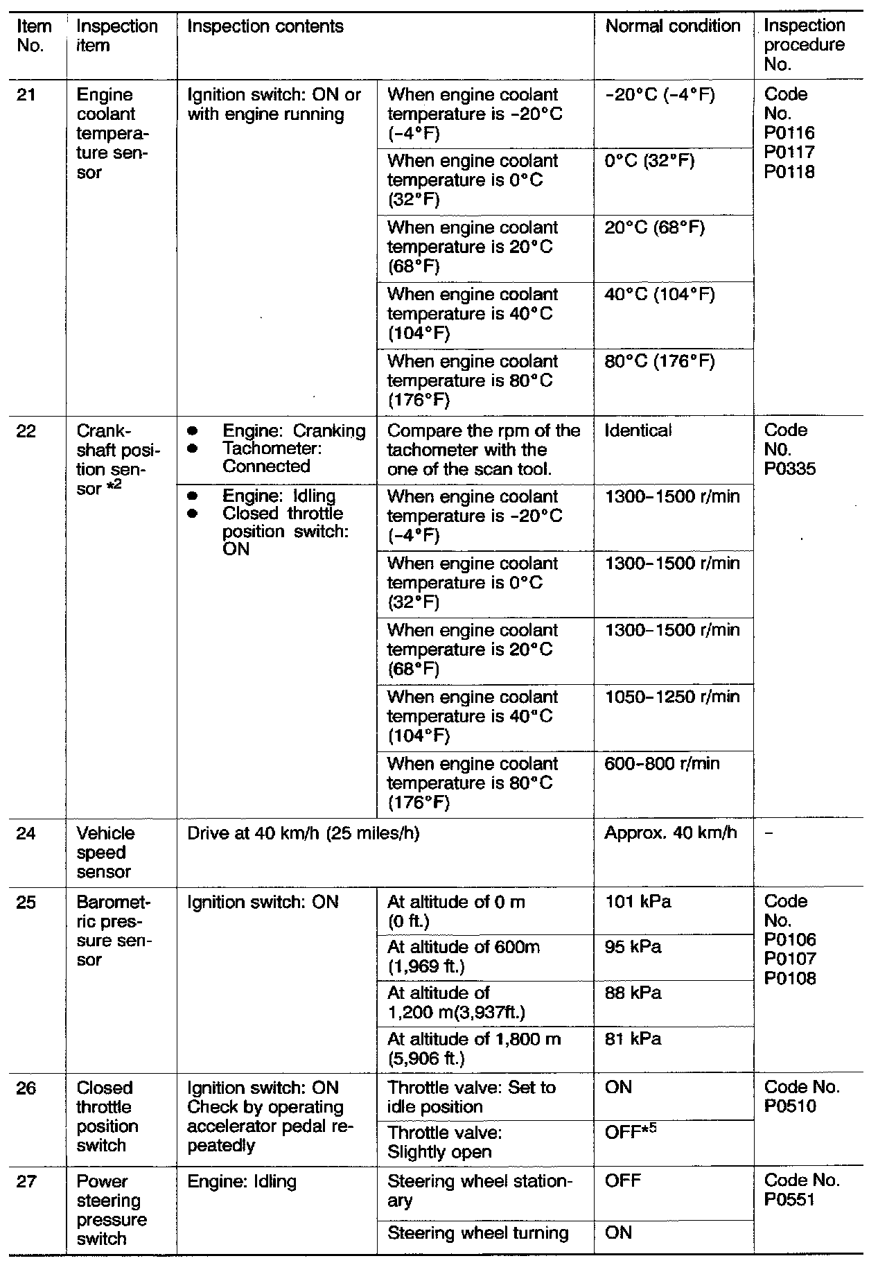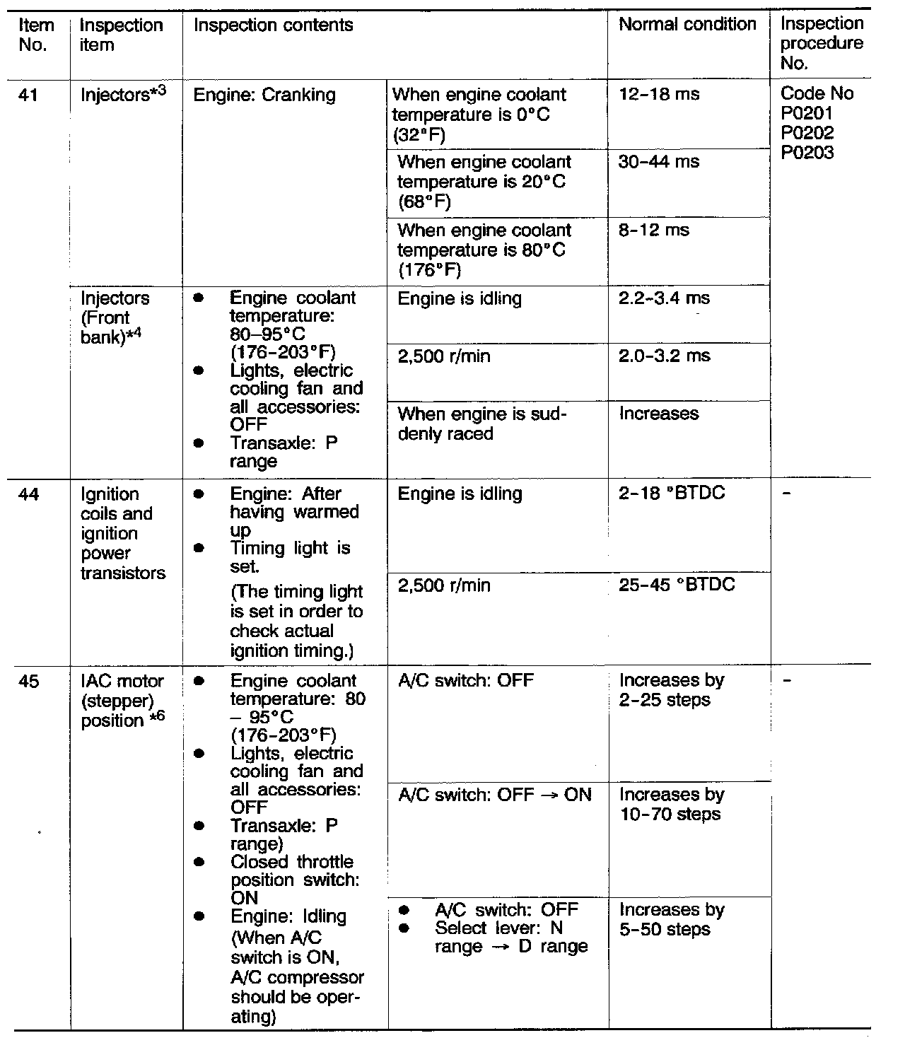 NOTE: *4: In a new vehicle [driven approximately 500 km (300 mile) or less], the injector drive time is sometimes 10% longer than the standard time.