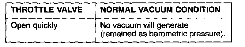 3. With the engine in cold and hot conditions, check the condition of vacuum when rapid racing has been performed by opening the throttle valve quickly.