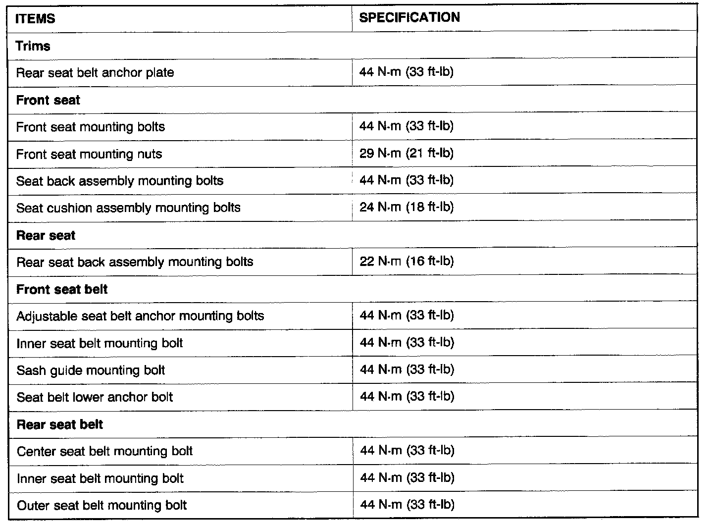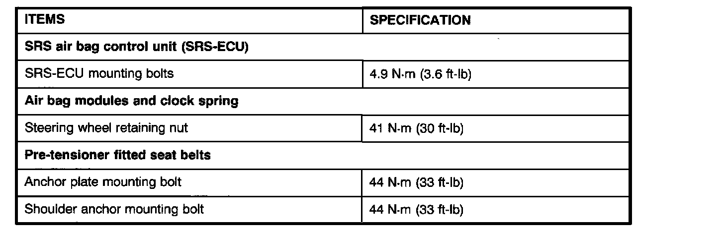 Fastener Tightening Specifications: