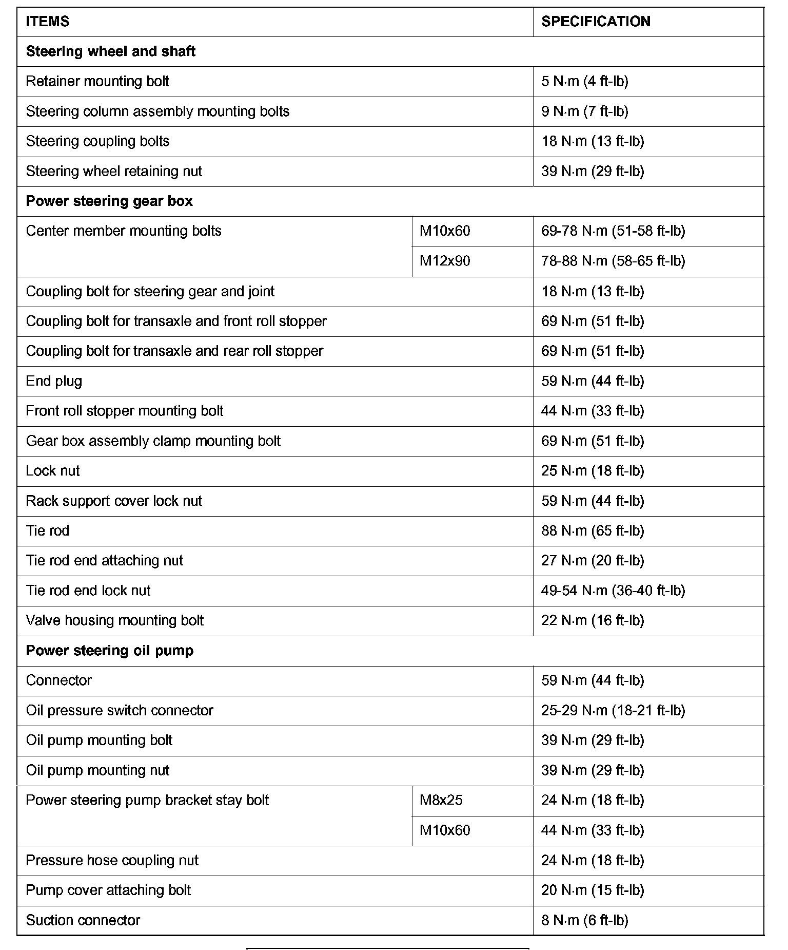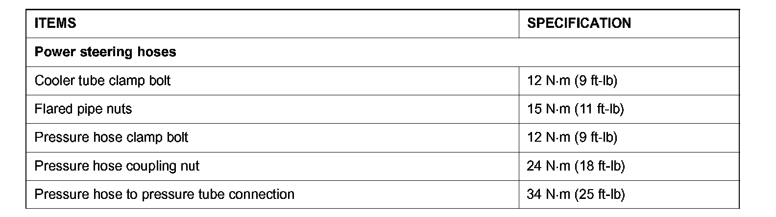 FASTENER TIGHTENING SPECIFICATIONS