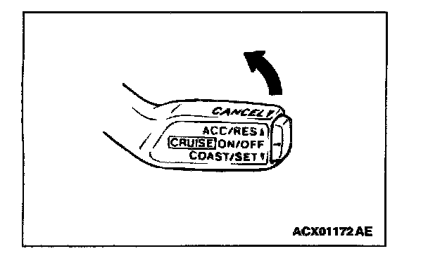 1. Set to the desired speed.2. Push the auto-cruise control switch in the direction of arrow.