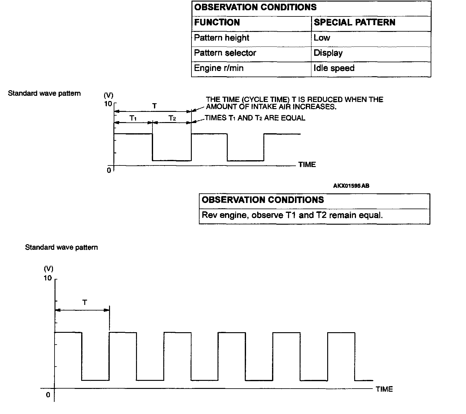 1. Check that cycle time T becomes shorter and the frequency increases when the engine speed is increased.
