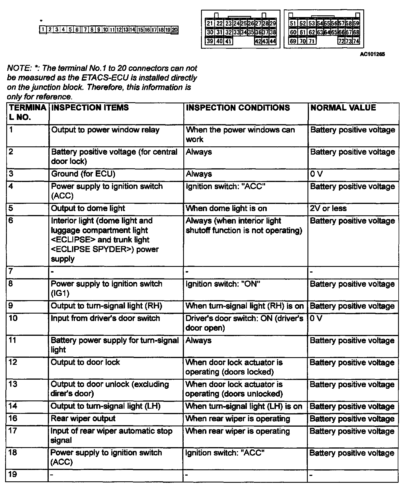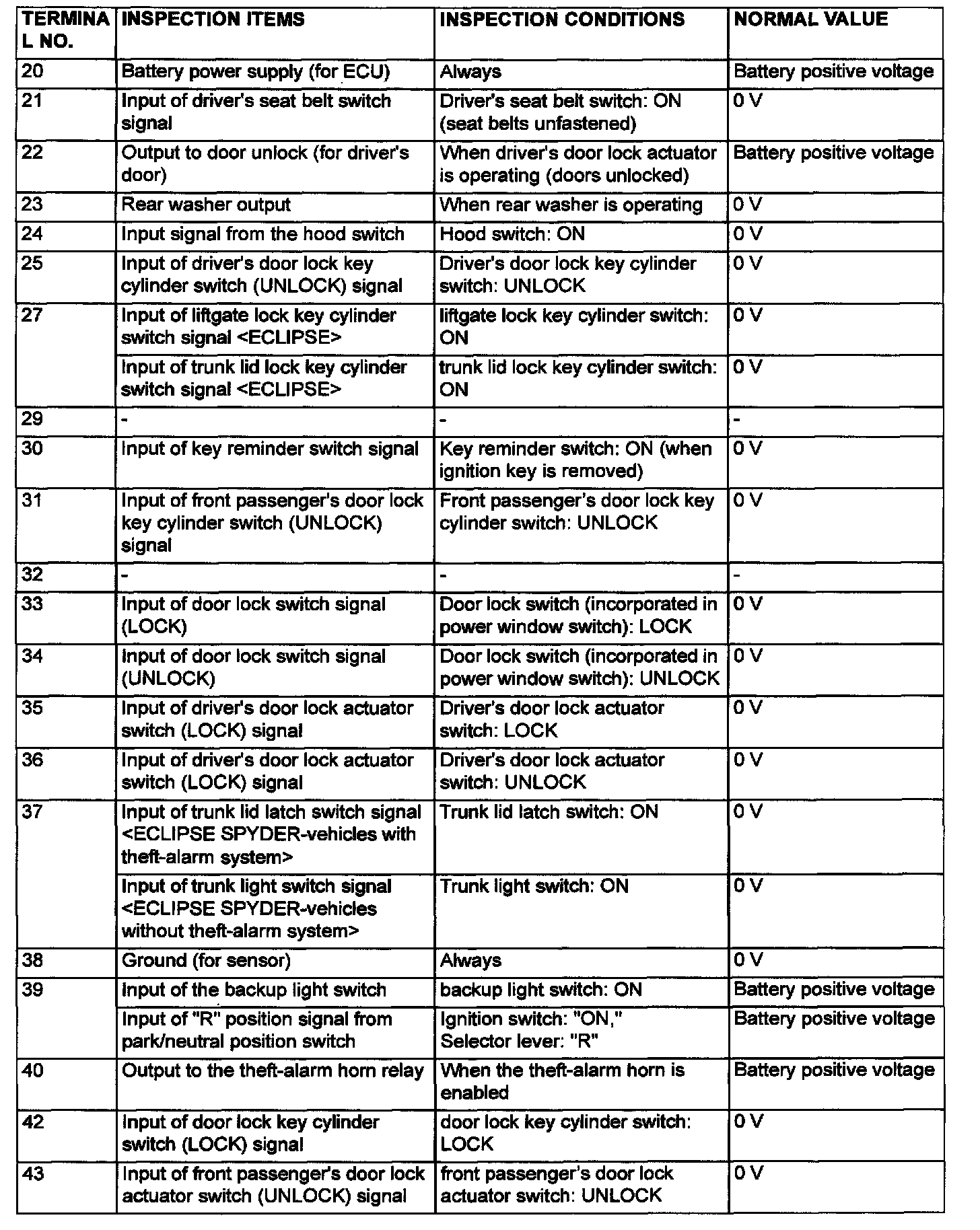 ETACS-ECU Terminal No: 20 - 43 Part 2: