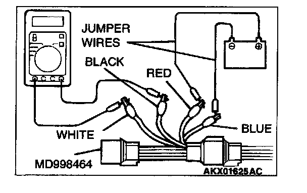 1. Disconnect the heated oxygen sensor connector and connect special tool MD998464 to the connector on the heated oxygen sensor side.