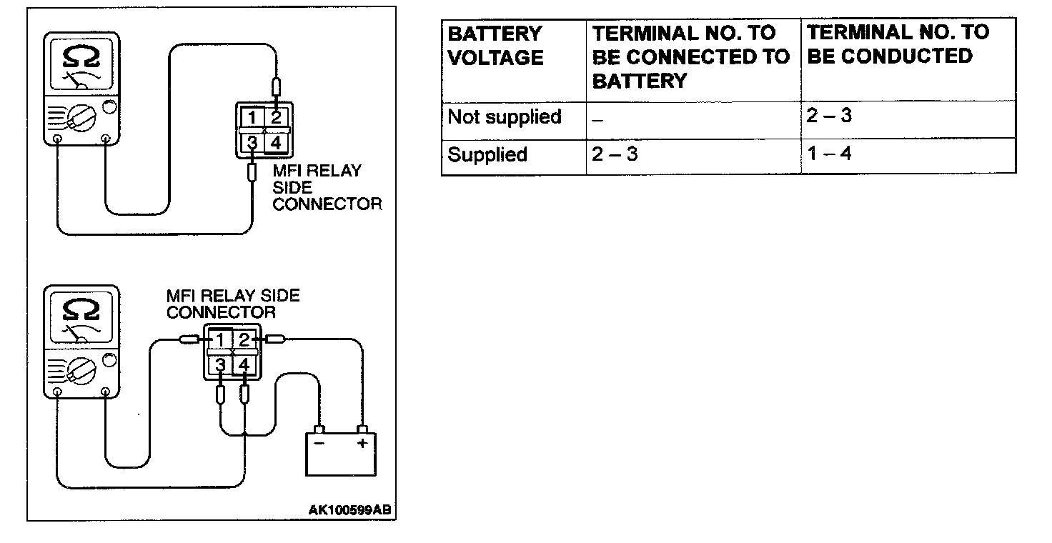 Multiport Fuel Injection (MFI) Relay Continuity Check: