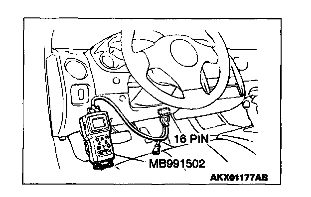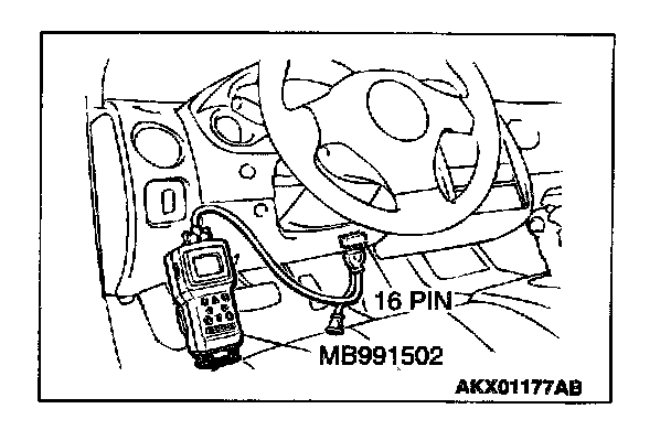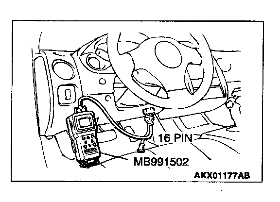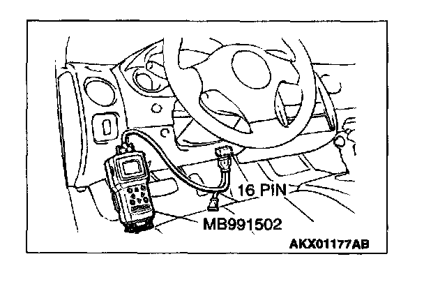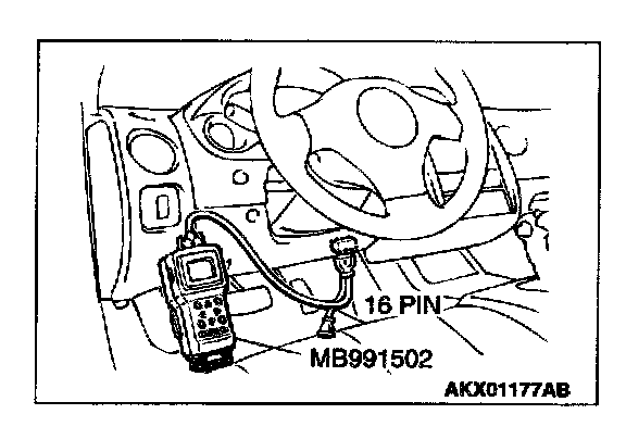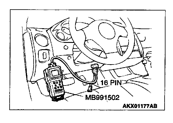 CAUTION: To prevent damage to scan tool MB991502, always turn the ignition switch to the "LOCK" (OFF) position before connecting or disconnecting scan tool MB991502.