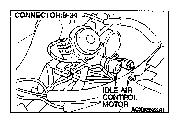 2. Check that the operation sound of the IAC motor can be heard after the ignition is switched to the "ON" position (but without starting the engine).