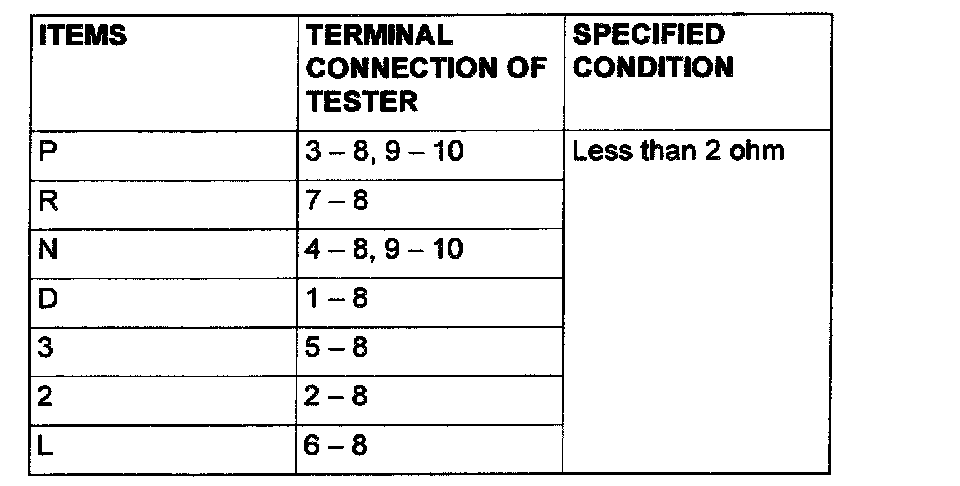 PARK/NEUTRAL POSITION SWITCH CONTINUITY CHECK