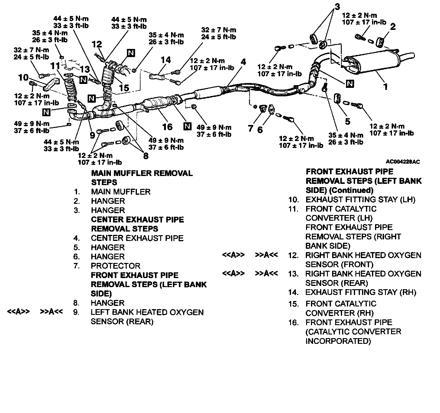<> HEATED OXYGEN SENSOR (REAR)/LEFT BANK HEATED OXYGEN SENSOR (REAR)/RIGHT BANK HEATED OXYGEN SENSOR (REAR)/RIGHT BANK HEATED OXYGEN SENSOR (FRONT) REMOVAL