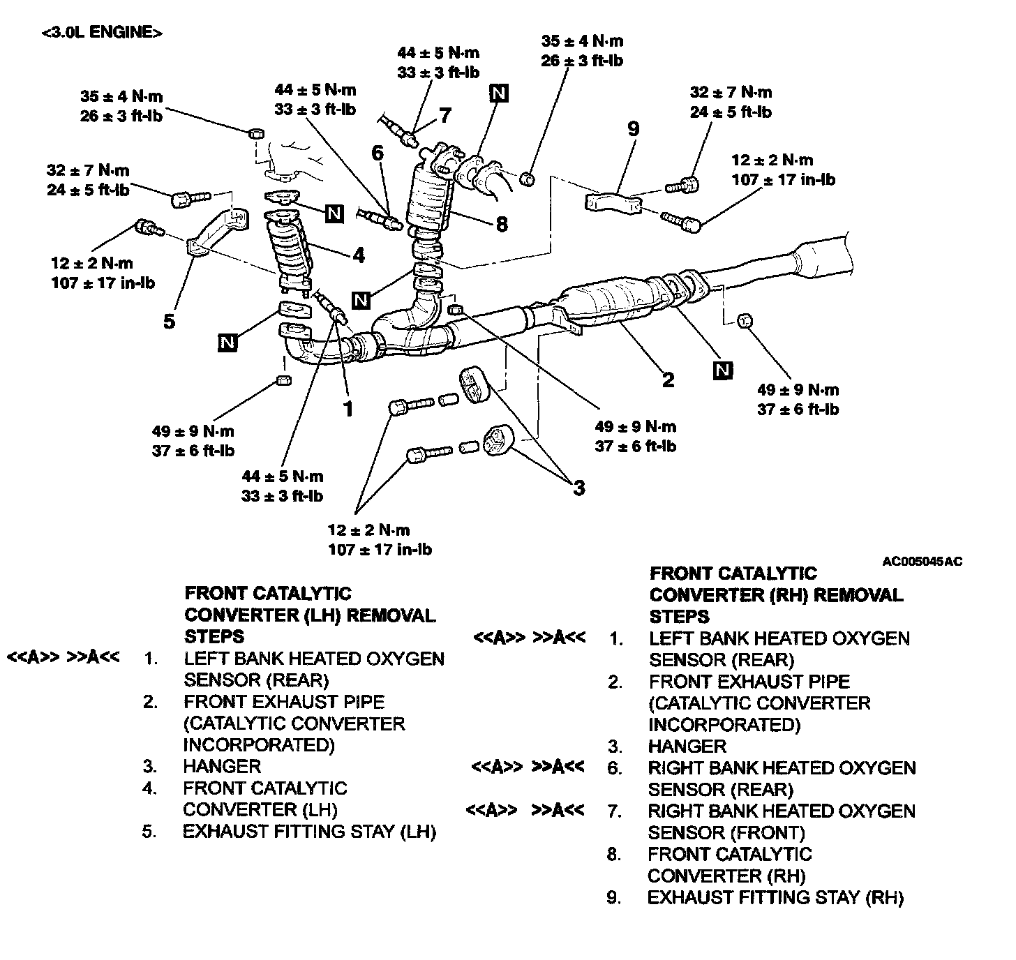 EXHAUST PIPE, MAIN MUFFLER AND CATALYTIC CONVERTER <3.0L>REMOVAL SERVICE POINT