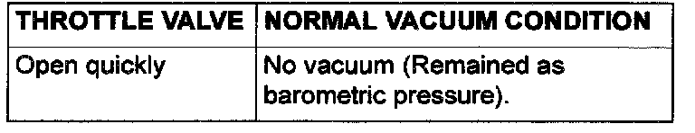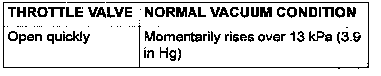 2. Start the engine. Check the vacuum condition when the throttle valve is opened suddenly (revving) during cold and hot engine conditions. If the engine is hot and the vacuum does not rise over 13 kPa (3.9 inHg), perform the vacuum control valve check and EGR port vacuum check. Then continue to Step 3. If vacuum rises momentarily, proceed to Step 3.