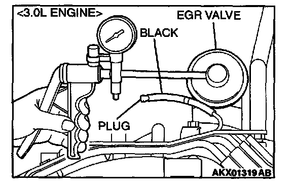 1. Disconnect the vacuum hose (black) from the EGR valve, and then connect a hand vacuum pump via the Tee-fitting.