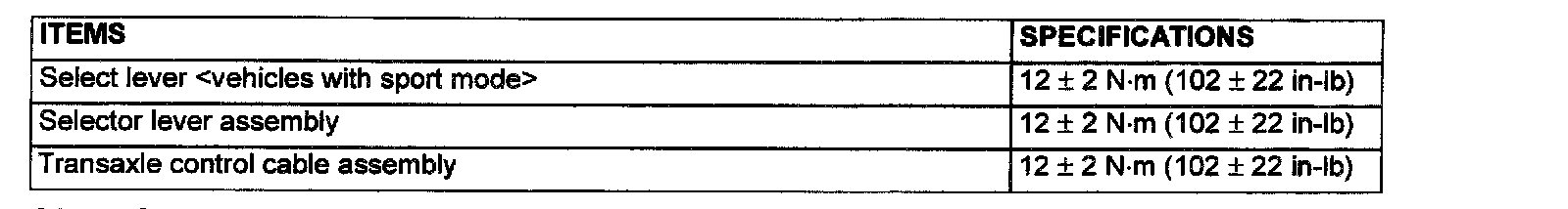 FASTENER TIGHTENING SPECIFICATIONS
