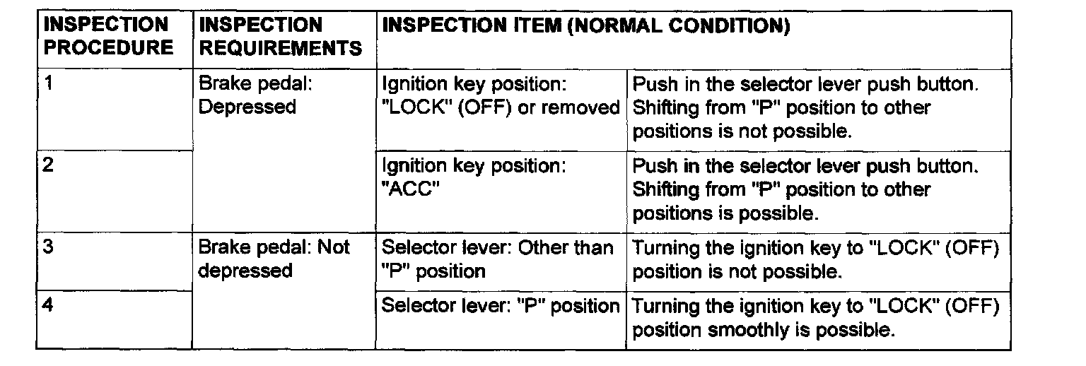 KEY INTERLOCK MECHANISM CHECK1. Carry out the following inspection.