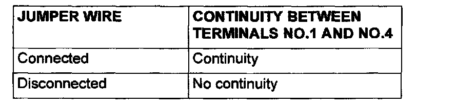 3. Check the continuity between terminal 1 and terminal 4 of the A/T control relay when the jumper wires are connected to and disconnected from the battery.