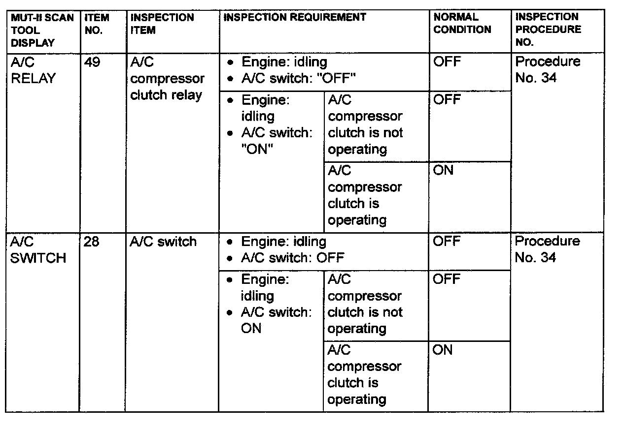 Data List Reference Table & Normal Scan Data Values