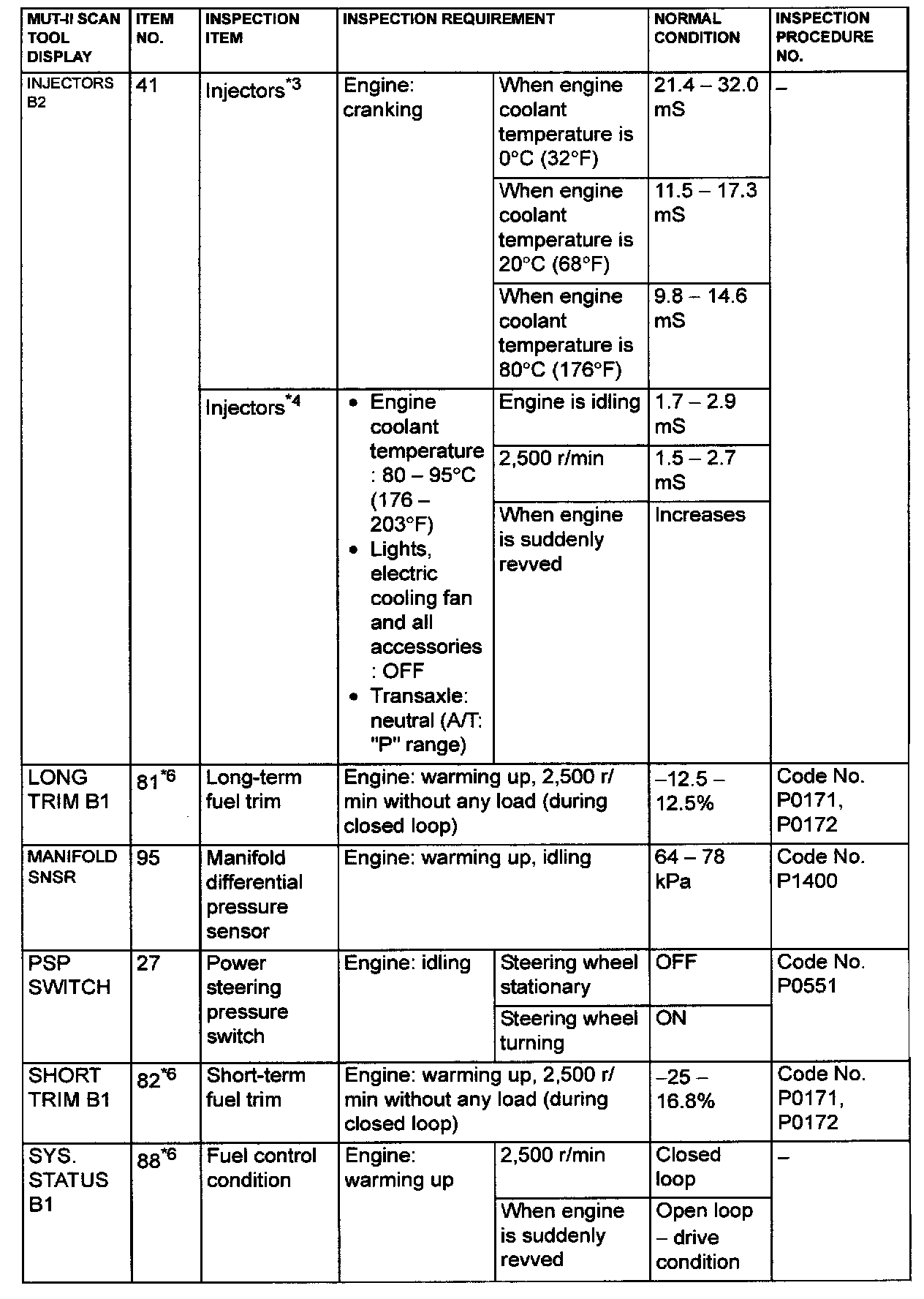 *4: In a new vehicle [driven approximately 500 km (311 mile) or less], the injector drive time is sometimes 10% longer than the standard time.