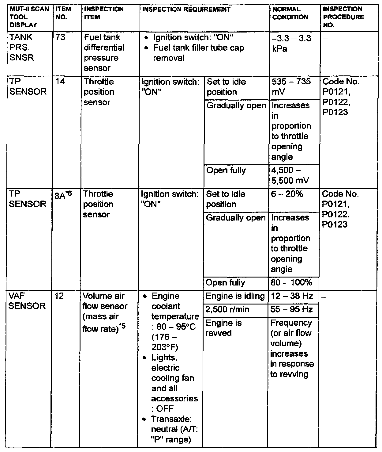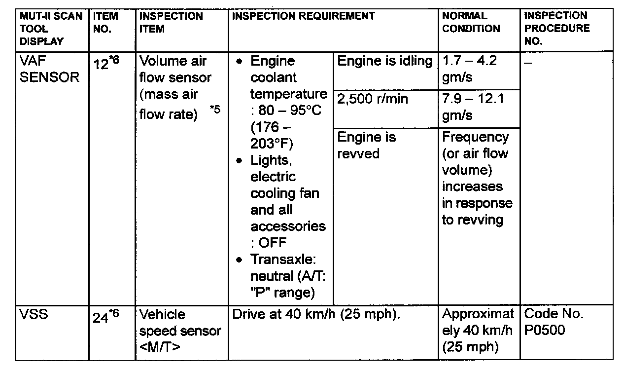 *5: In a new vehicle [driven approximately 500 km (311 mile) or less], the volume airflow sensor output frequency is sometimes 10% higher than the standard frequency.
