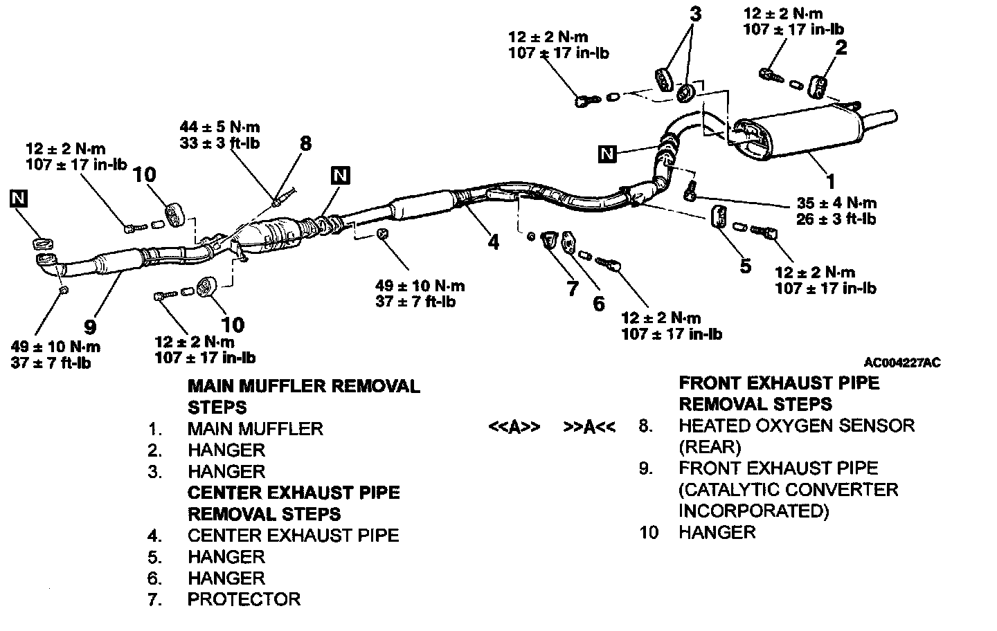 EXHAUST PIPE, MAIN MUFFLER AND CATALYTIC CONVERTER <2.4L>REMOVAL SERVICE POINT